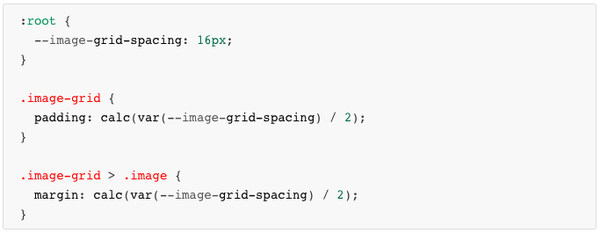 现在,我们可以直接看到计算过程,如果想要调整数值也很方便。甚至,你还能将变量变成页面级的,将 --page-grid 的值作为其他元素的基础值: