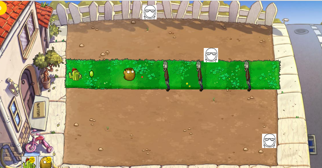 各种属性例如血量、攻击力都存放在html5的自定义属性里,添加的植物会放置到植物数组里、定时器添加的僵尸会放置到僵尸数组里,子弹会间隔一段时间在有攻击力的植物面前添加一颗(其实就是定时器遍历植物列表去添加子弹),定时器会遍历子弹让子弹去移动,也会遍历僵尸让僵尸去移动,僵尸移动到植物上,以及子弹碰到僵尸都会有一个伤害,这个伤害会由我们单独封装的函数去计算。