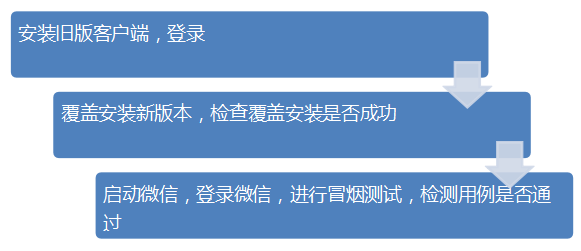 覆盖安装测试的流程较简单,尽可能模拟真实用户升级安装使用的场景。覆盖安装之后,用户启动微信时,后台发出升级指令,升级主要是确认老版本的数据能否在新版本中使用;最后通过冒烟测试,检测微信核心功能(覆盖到主要的数据库)能否正常通过。微信团队重视覆盖安装测试,除了监测一些数据兼容性问题外,还需检测新打的包是否有问题。此外tinker的patch包也需要经过类似的测试,保证patch成功以及基本的核心功能。