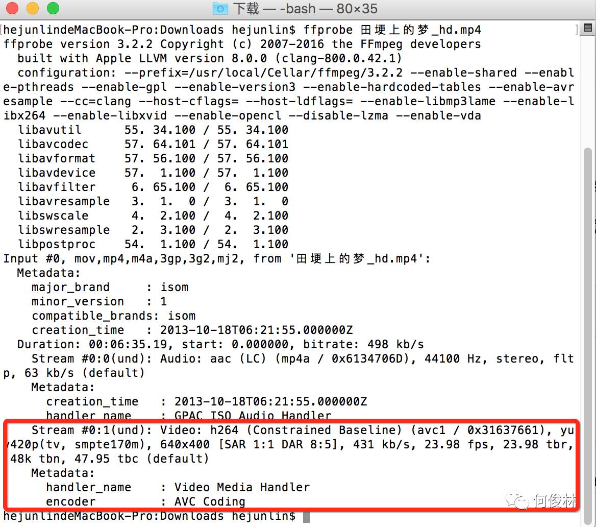 首先将视频文件转为视频编码h.264,音频编码aac格式的mp4文件 1、使用ffprobe查看文件编码方式