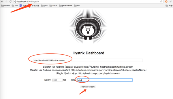 }打开浏览器:访问http://localhost:8764/hystrix,界面如下: