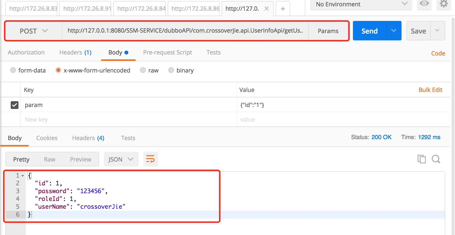 http://127.0.0.1:8080/SSM-SERVICE/dubboAPI/com.crossoverJie.api.UserInfoApi/getUserInfo。 - 具体如上文的调用实例。先将