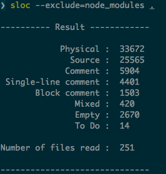我们都知道重构通常都会把代码变少,那么怎么跟别人证明这点呢?你需要一个计算代码行数的工具:sloc 就是为这个而生,能准确统计代码总行数、注释的行数、空白的行数,能以多种格式输出,并且支持单个文件的方式来统计,实际的安装和使用见上面的项目主页。下面是结果示例: