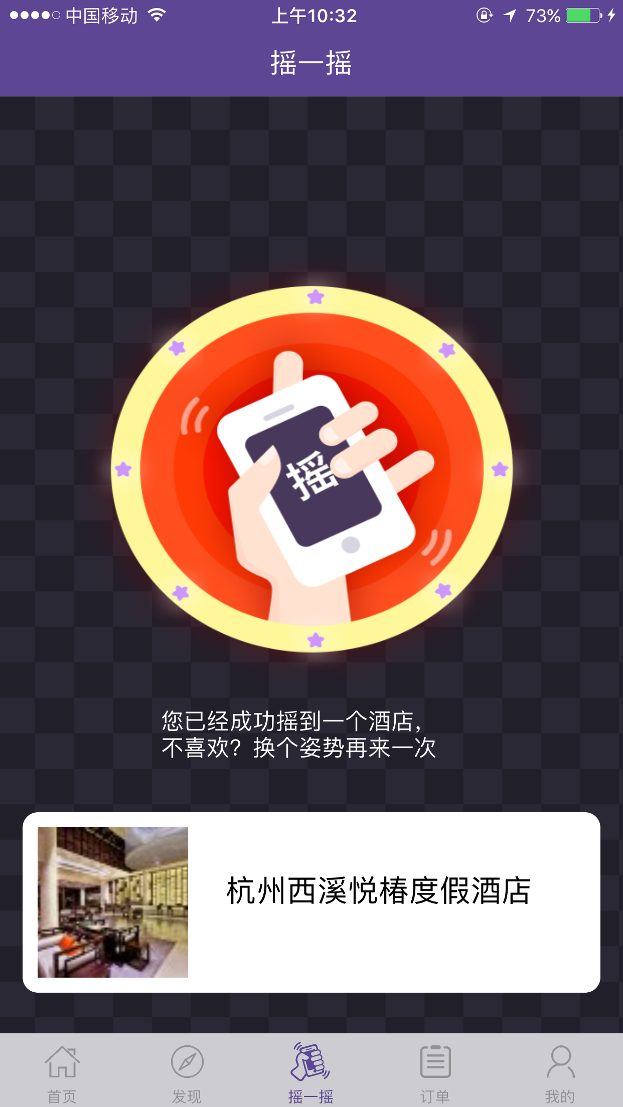 在移动的时候将手机震动,并将view显示出来,并请求接口,将酒店显示出来,点击进入到酒店详情界面。