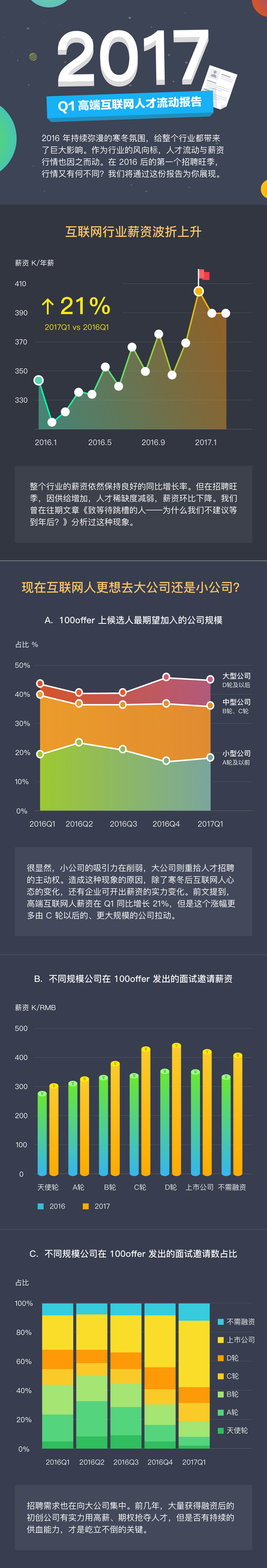 2017 年的春季招聘季刚刚过去,在这 2016 资本寒冬年后的第一个招聘旺季,互联网招聘市场正悄然变化。最大的一个变化也许是:招募互联网高端人才的主力,正在从中小型创业公司向中大型公司转移。