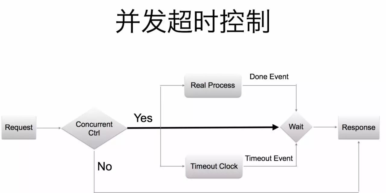 并发超时控制模型如上图所示,在模型中引入了“Concurrent Ctrl”模块,这个模块属于微服务熔断功能的一部分,用于控制客户端能够发起的最大并发请求数。并发超时控制整体流程是这样的