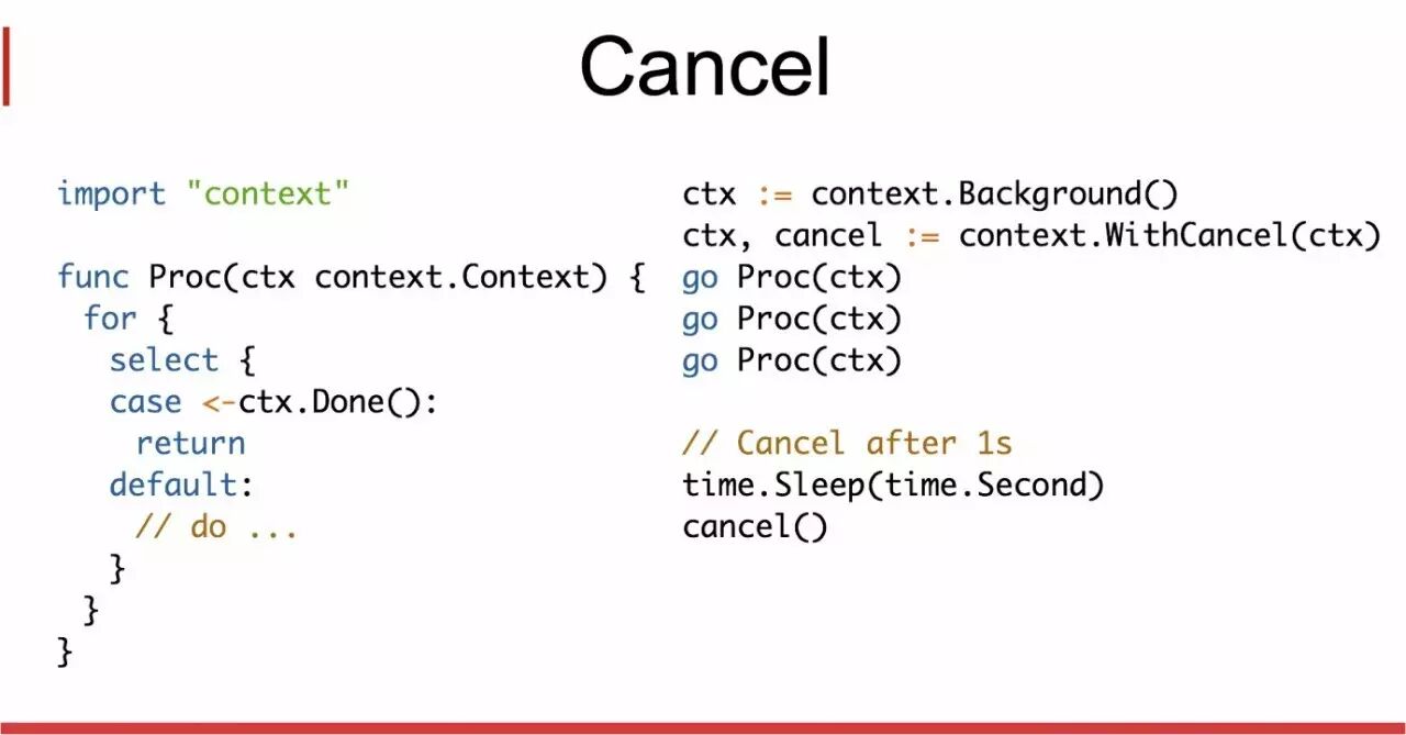 在 Go 语言中,分别有 sync.WaitGroup 和 context.Context 来实现这两种模式。