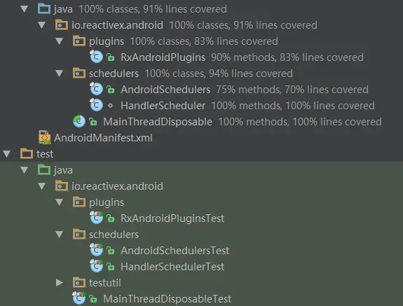 通过 AS 的 Run Tests with Coverage,数据表明:这个框架的单元测试行覆盖率达到 91%,如下图: