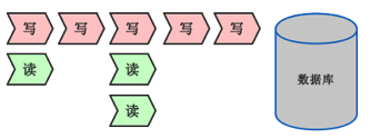 采用锁分离技术可以提高并行度,但我还想要再提高速度呢?我们可以把控制事务的锁拆分成读写锁。使用读写锁后,事务内部的所有读操作都可以并行,就如同这样: