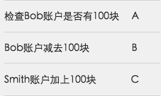 还是以Bob向Smith转账100块钱为例,整个事务包含如下操作: