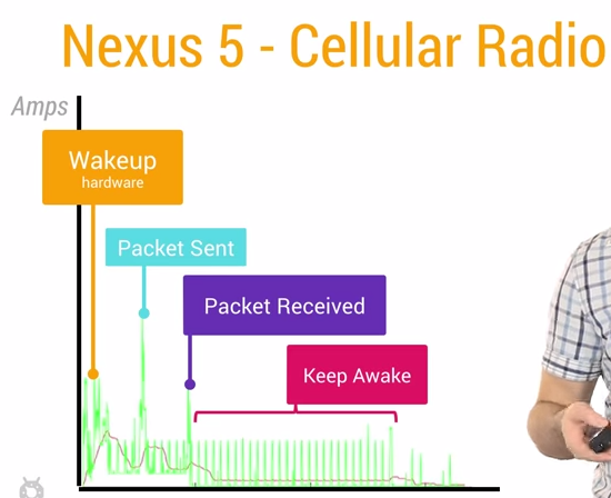 通常情况下,使用3G移动网络传输数据,电量的消耗有三种状态: