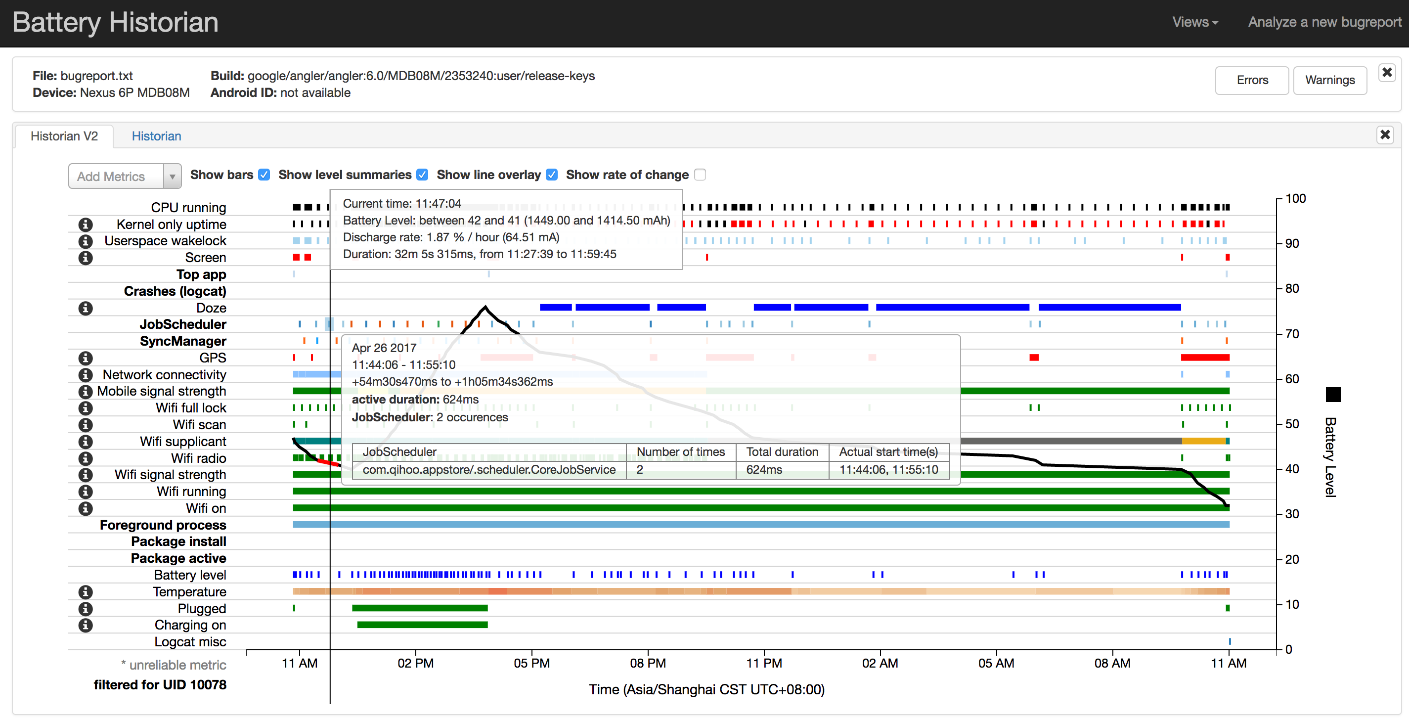 - 使用Battery Historian进行分析,这是分析里最重要的一步;