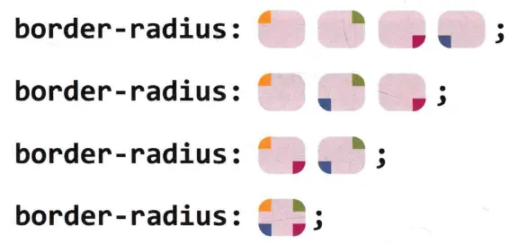 1. border-radius:<length-percentage>{1,4} [ / <length-percentage>{1,4} ]?where<length-percentage> = <length> | <percentage>
