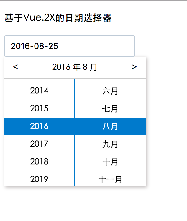 <datepicker v-on:picked="picked"></datepicker>(该组件源码为components文件夹下面的datepicker.vue文件, 其余文件是搭建了一个简易的express框架)