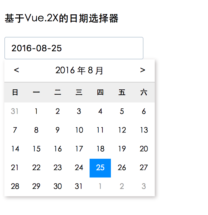 Datepicker是一款稍微复杂的组件,其中涉及的日历计算与显示需要比较清晰的逻辑。