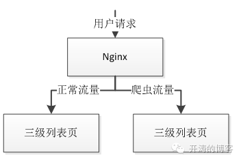 实际场景我们使用了Openresty,不仅仅对爬虫user-agent过滤,还会过滤一些恶意IP(统计IP访问量,配置阀值),将他们分流到固定分组。还有一种办法是种植Cookie,访问特殊服务前先种植Cookie,访问服务时验证该Cookie,如果没有或者不对可以考虑出验证码或者分流到固定分组。