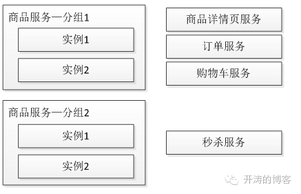 随着调用方的增多,当秒杀服务被刷会影响到其他服务的稳定性,此时应该考虑为秒杀提供单独的服务集群,即为服务分组,从而当某一个分组出现问题不会影响到其他分组,从而实现了故障隔离,如下图所示