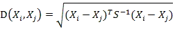 而其中向量Xi与Xj之间的马氏距离定义为: