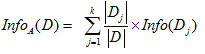 如果我们将这个数据集按照数据的某个特征(不是按数据类别分,因为我们做的是学习+预测,不是对训练样本分类)进行了分类,分成了多个小数据集,那整个数据集熵的计算公式如下:
