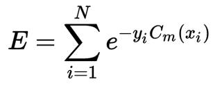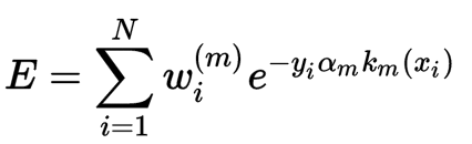 依照AdaBoost的优化目标,我们定义E为AdaBoost的指数损失函数: