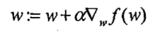 然后继续,我们怎样调整θ让目标函数的值增大呢,这里就要用到梯度上升算法了(之后θ替换回w)。
