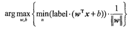 我们要通过最大化支持向量与分隔超平面的距离来求得分隔超平面,又因为支持向量是距离分隔超平面最近的样本点,这就可以写作: