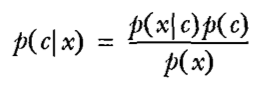贝叶斯公式是概率论中一定会讲到的内容,这里c和x均指『某种情况』,而p(c)、p(x)指发生这两种情况的概率,p(x|c)指在已知c情况发生的条件下x情况发生的概率,p(c|x)同理。