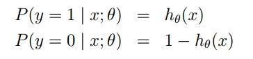 上式即为在已知样本x和参数θ的情况下,样本x属于正类(y=1)和负类(y=0)的条件概率。