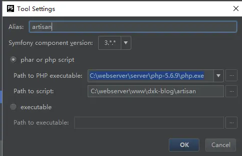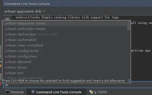 在command line tools控制台中执行artisan命令:artisan app:name dxk