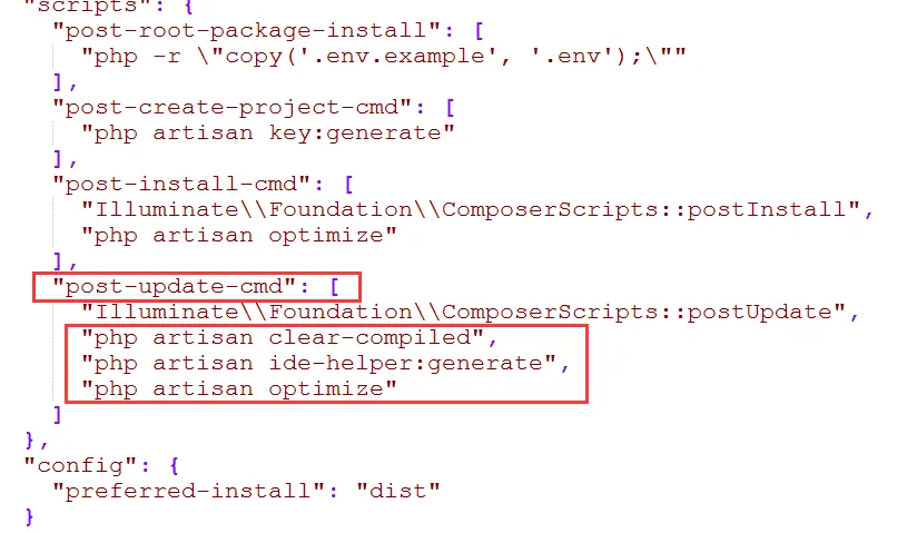 还可以在composer.json的post-update-cmd中加入命令保证helper在每次commit都会更新,如下: