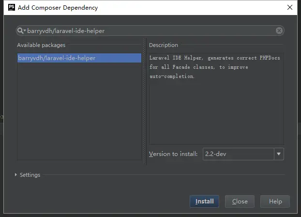 使用composer命令安装,composer require barryvdh/laravel-ide-helper。你也可以使用PhpStorm中的composer界面安装。