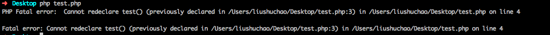 <?phpfunction test(){}function test(){}