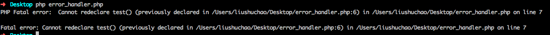 当我们在运行test.php的时候,因为redeclare了两个test()方法,所以php的语法解析器在parse-time的时候就出错了。 所以不能回调register_shutdown_function()中的方法,不能catch住这个fatal error。
