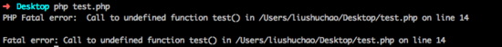 }//调用一个不存在的函数,会出现Fatal Errortest();