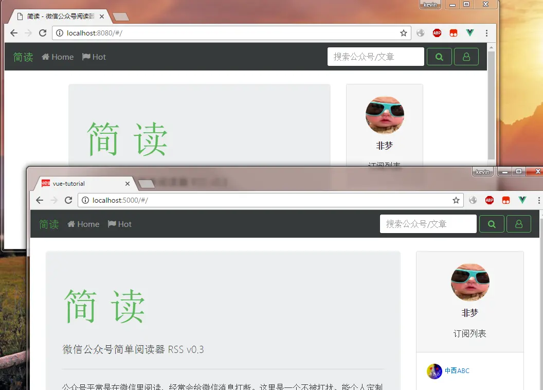 - 我们的Vue2.0应用:简读-微信公众号RSS,即将进入后端开发。