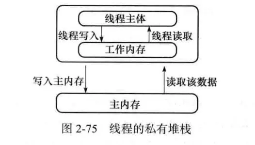 下面解释一下这段代码为何有可能导致无法中断线程。在前面已经解释过,每个线程在运行过程中都有自己的工作内存,那么线程VolatileExample在运行的时候,会将flag变量的值拷贝一份放在自己的工作内存当中。