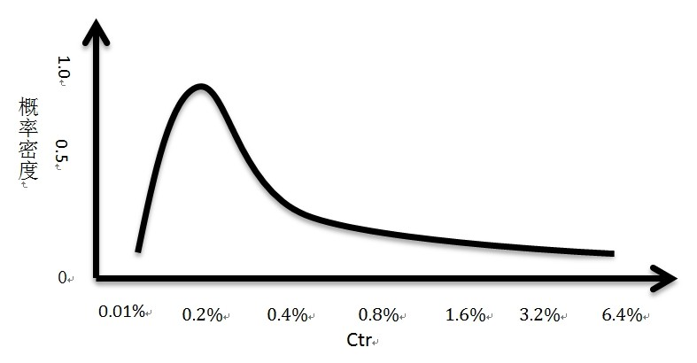 可以看到,大部分广告的点击率都是在某一个不大的区间内的,点击率越高的广告越少,同时这些广告覆盖的流量也少。换句话说,点击率在0.2%左右的时候,如果广告a的点击率是0.2%,广告b的点击率是0.25%,广告b的点击率比广告a高0.05%,其实足以表示广告b比广a好不少,因为有足够多的样本支持这个结论