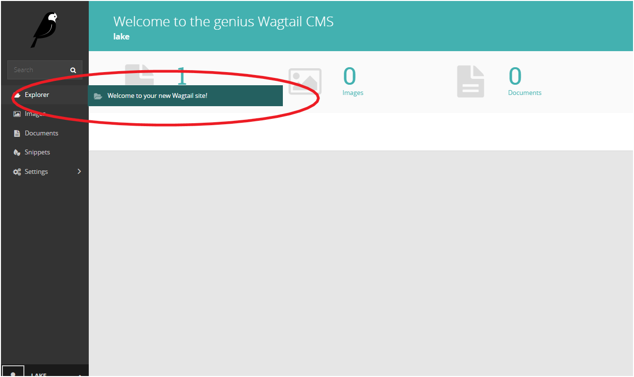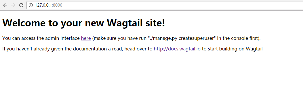 wagtail start genius(pip install wagtail安装依赖)创建名为genius的工程文件夹,cd genius进入目录。 - 在windows命令行输入