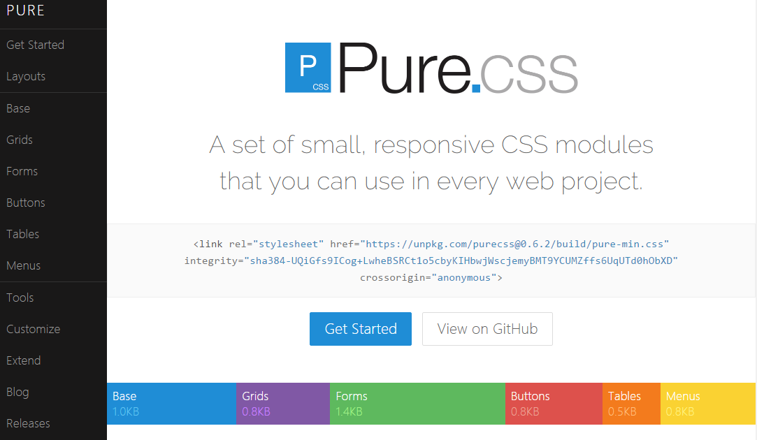 <link rel="stylesheet" href="https://unpkg.com/purecss@0.6.2/build/pure-min.css">