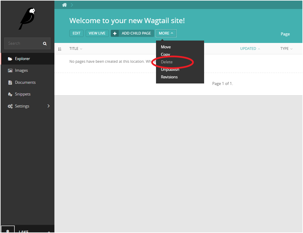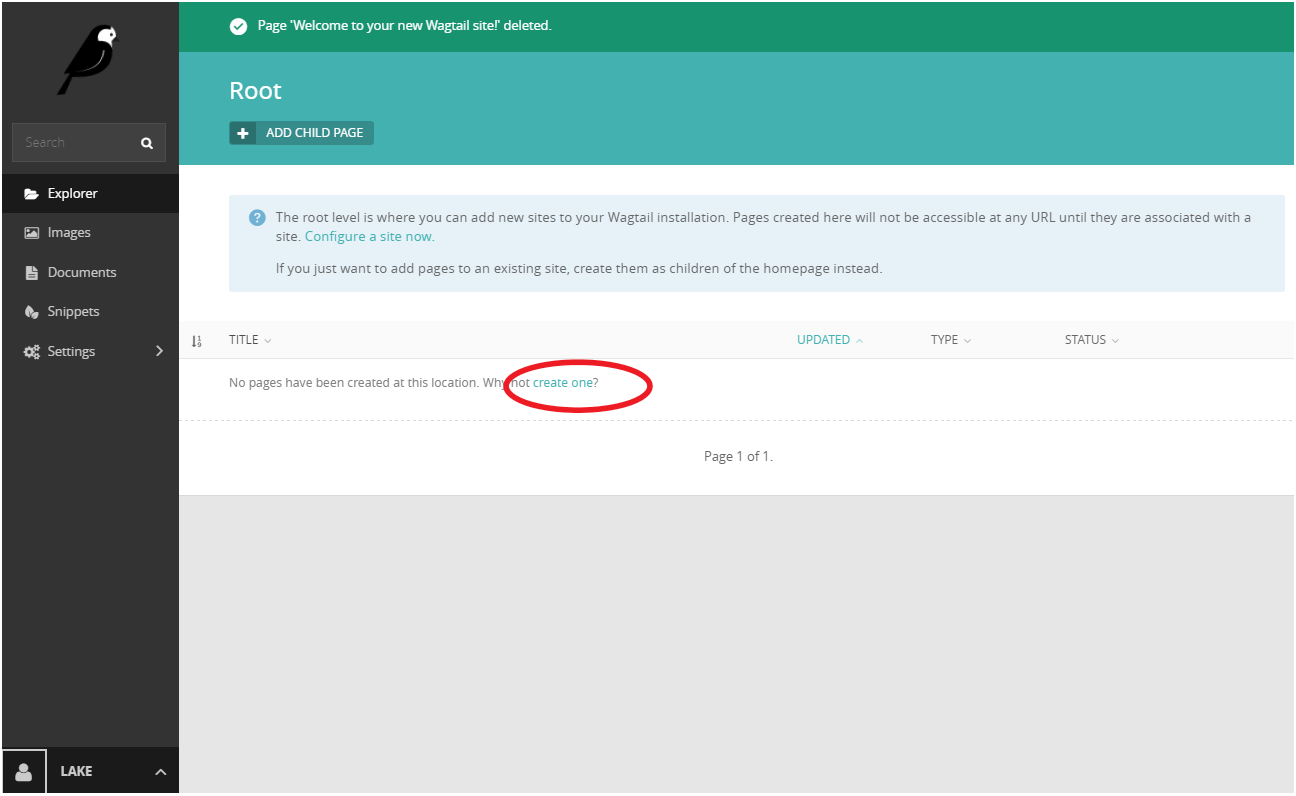 确认删除后,选择在根目录下新建页面