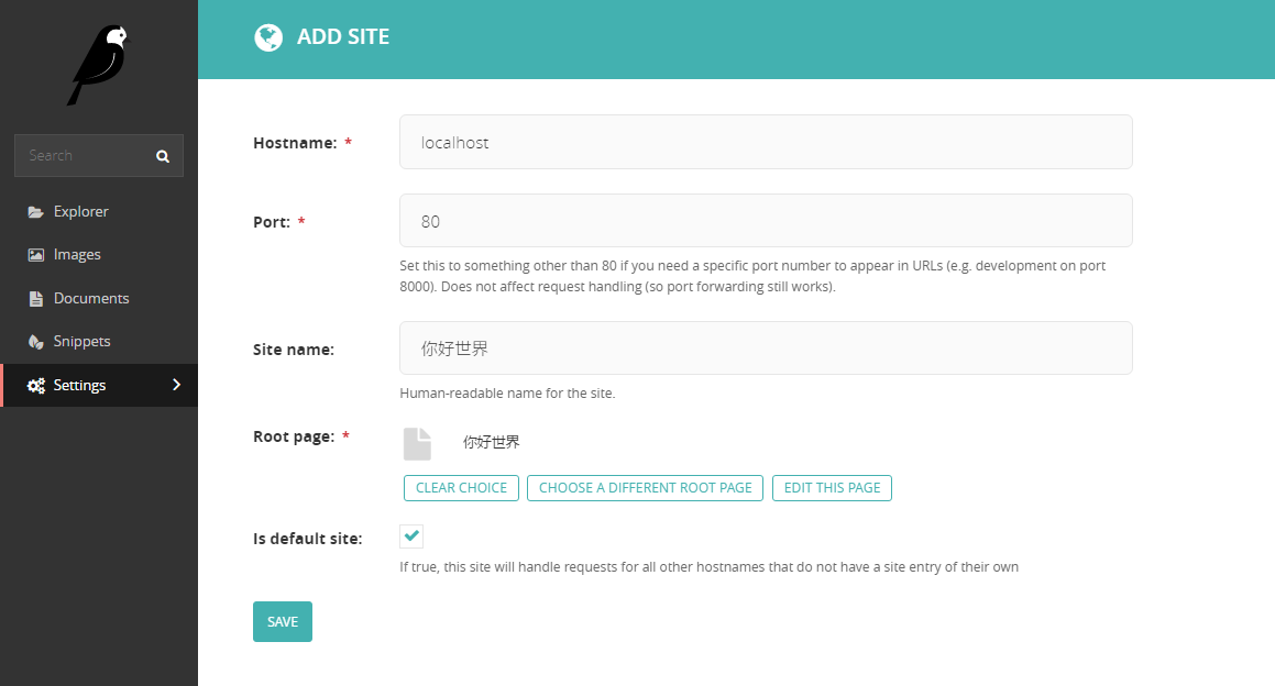 如下图创建并保存,Root Page选择新创建的页面。