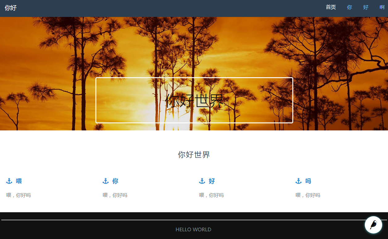 - 大功告成,我们的页脚也完善了,整个首页的制作就此完成。全部代码与样例页面所在数据库在github上,wagtail-tutorial-1,可直接运行,管理员账号lake,密码123,也可另创管理员。