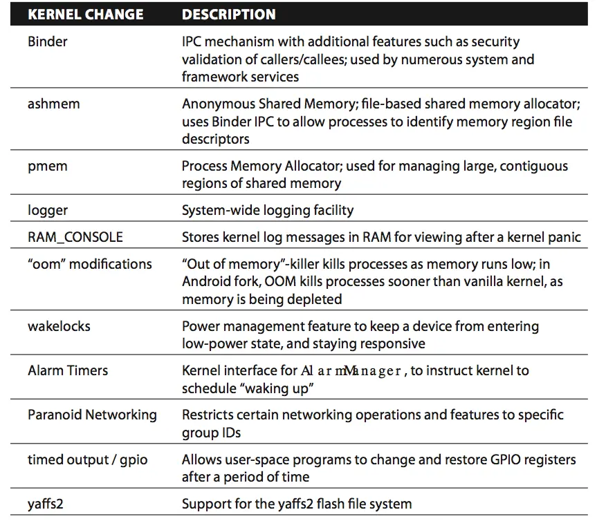 接下来会讨论Android对标准的Linux Kernel做了一些修改。