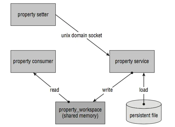 在init进程中,提供持久化,内存对应的键值对形式的配置参数。包括网络接口参数,音频参数和安全相关设置都依赖这些配置参数。