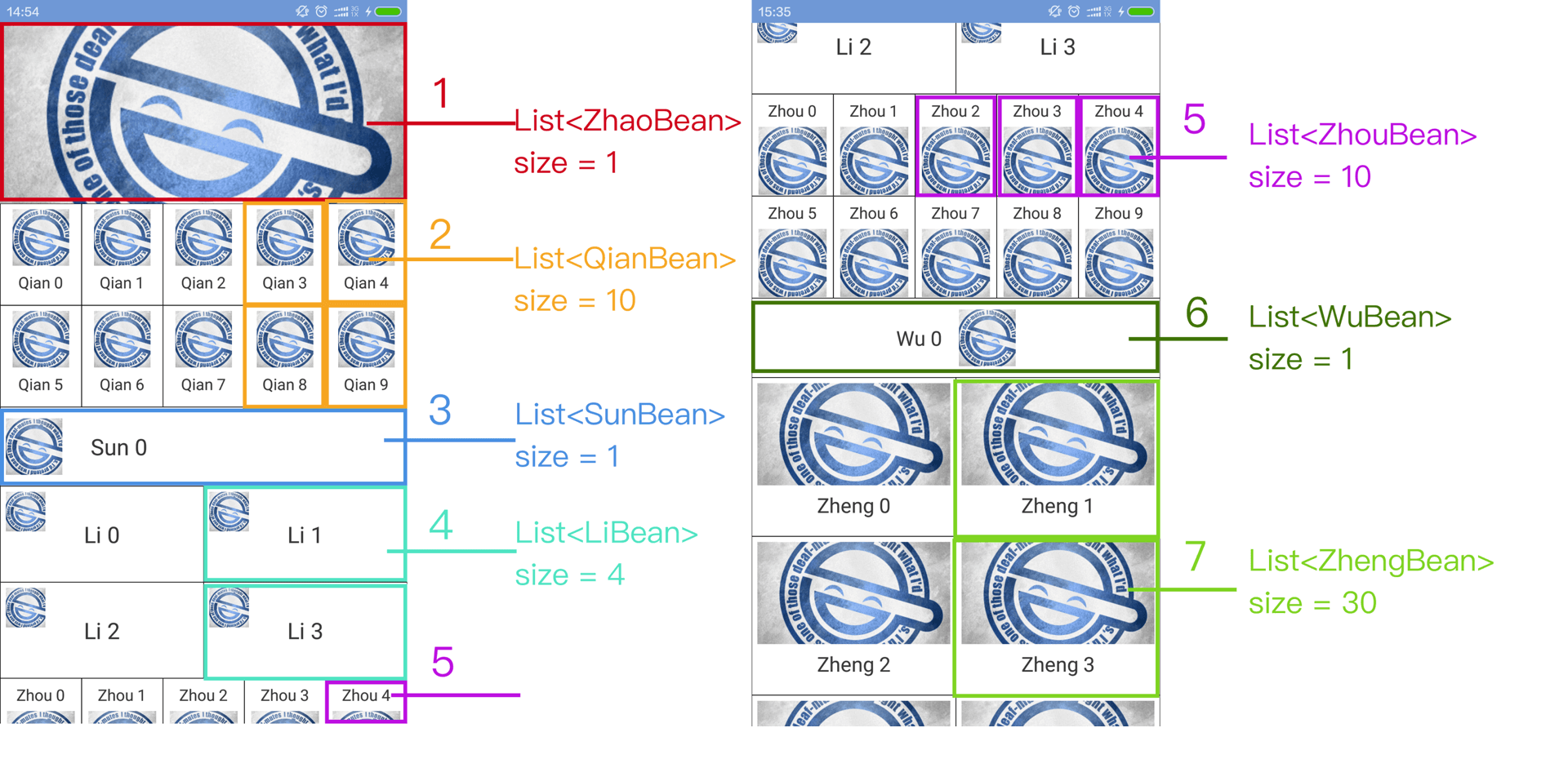 模拟服务器传来7种不同的List集合,需要设计7种不同的ViewHolder