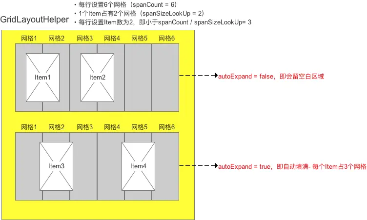 LayoutHelper负责布局一批组件范围内的组件,不同组件范围内的组件之间,如果类型相同,可以在滑动过程中回收复用。因此回收粒度比较细,且可以跨布局类型复用。 - 支持扩展外部:即注册新的