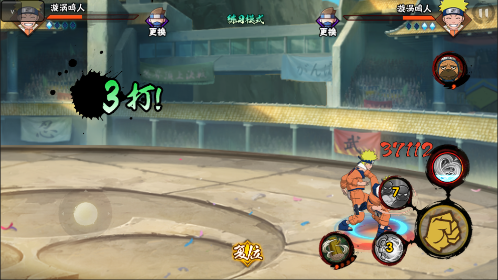 视频中可以看到蓝色鸣人(普攻+螺旋丸+大招的组合),已经显示出部分训练效果 -