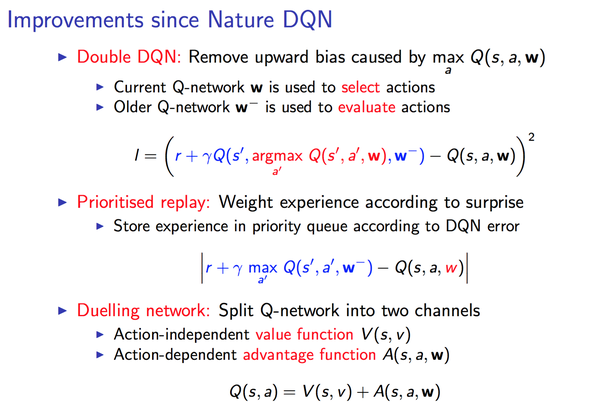 上面提到的是NatureDQN算法比较核心的几点,之后DQN算法也出现很多改进。