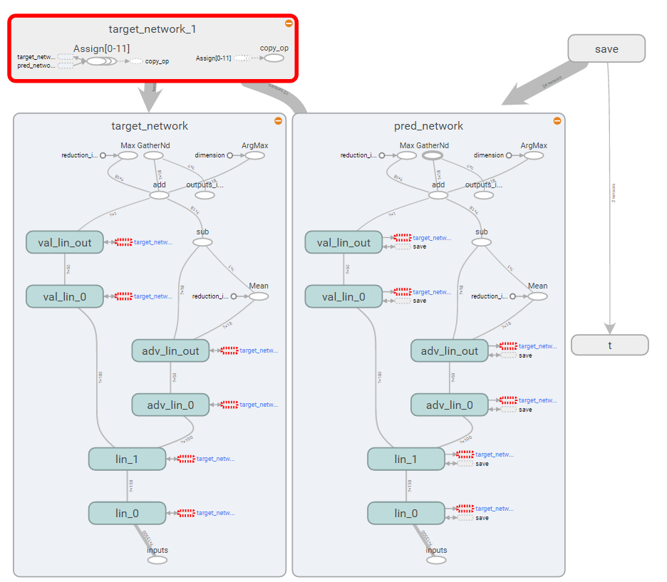 每次训练计算当前状态State执行的Action带来的预期收益时,首先通过TargetNetwork将下个状态产生的最大收益通过一定的收益衰减叠加到QNetwork当前状态执行的Action产生的收益上,用来计算预期收益,这是一种很直观的方法,但也会带来一些潜在问题,在接下来的时间中会具体讲到改良方法。