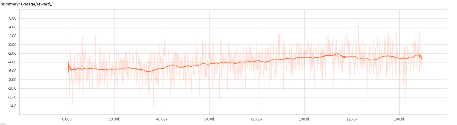 由于训练过程中,对于经验池中的记录采样采取随机采样的方式,导致取出的Agent能产生较大Reward的样本被采样进行训练的概率较低,我在后续改进中将会通过PriorisisedReplay的方法,优先采样Reward较大的样本进行训练